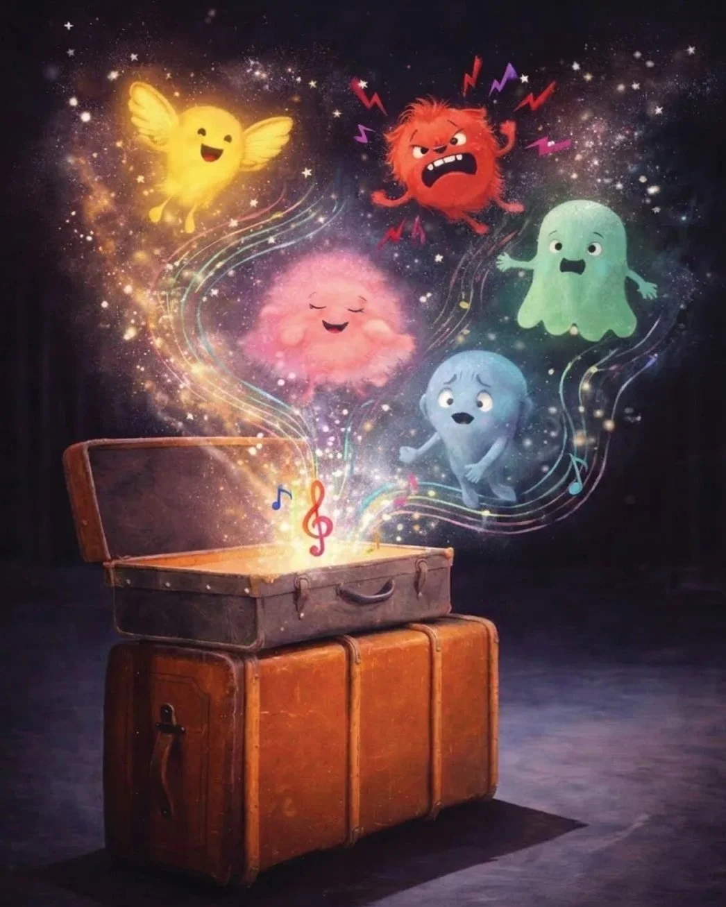 Hvordan kjennes det i kroppen når glede bobler over? Hva gjør sinne når det bruser? Hvordan hvisker tristhet, og hva skjer når redsel sniker seg inn? Og kan ro hjelpe når alt blir litt for mye? Gjennom levende musikk, lek og bevegelse får barna oppleve hvordan følelser kan høres, kjennes og uttrykkes.